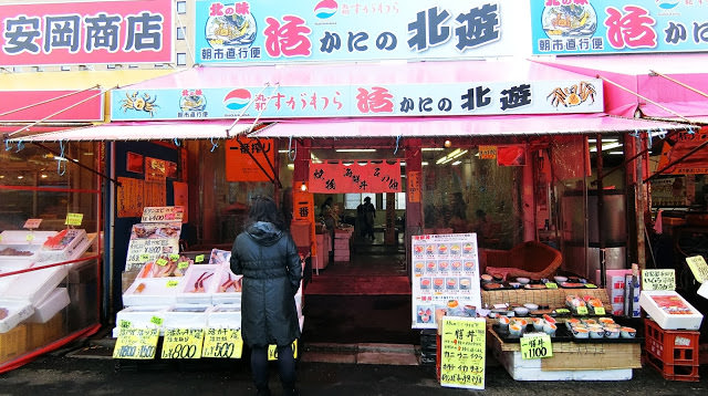 函館朝市就好像東京的築地市場,海鮮的種類很多,可以買回家也可以在現場享用,但只開到中午,所以這天雖然我們在飯店吃完早餐,還是在11點多就過來看看有什麼海鮮好吃!