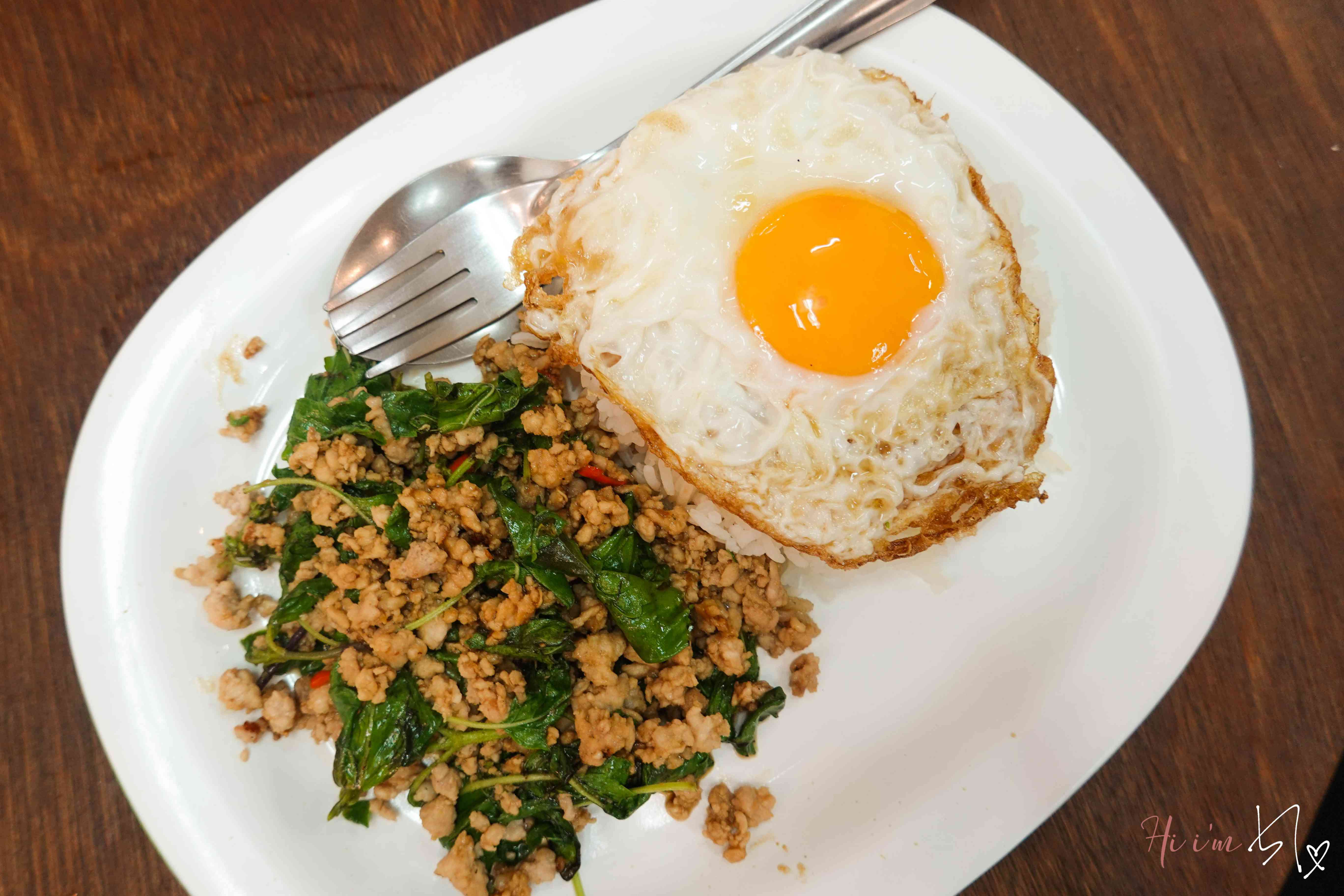 我們就點了這家看似琳瑯滿目的攤位,分別點了打拋豬和冬粉蝦煲,順帶推薦在台北松江南京有一家老麵攤泰式料理,許多人吃完都覺得很道地,那家的冬粉蝦煲很棒,不過要價480元,而這裡只要150泰銖,馬上點來吃!