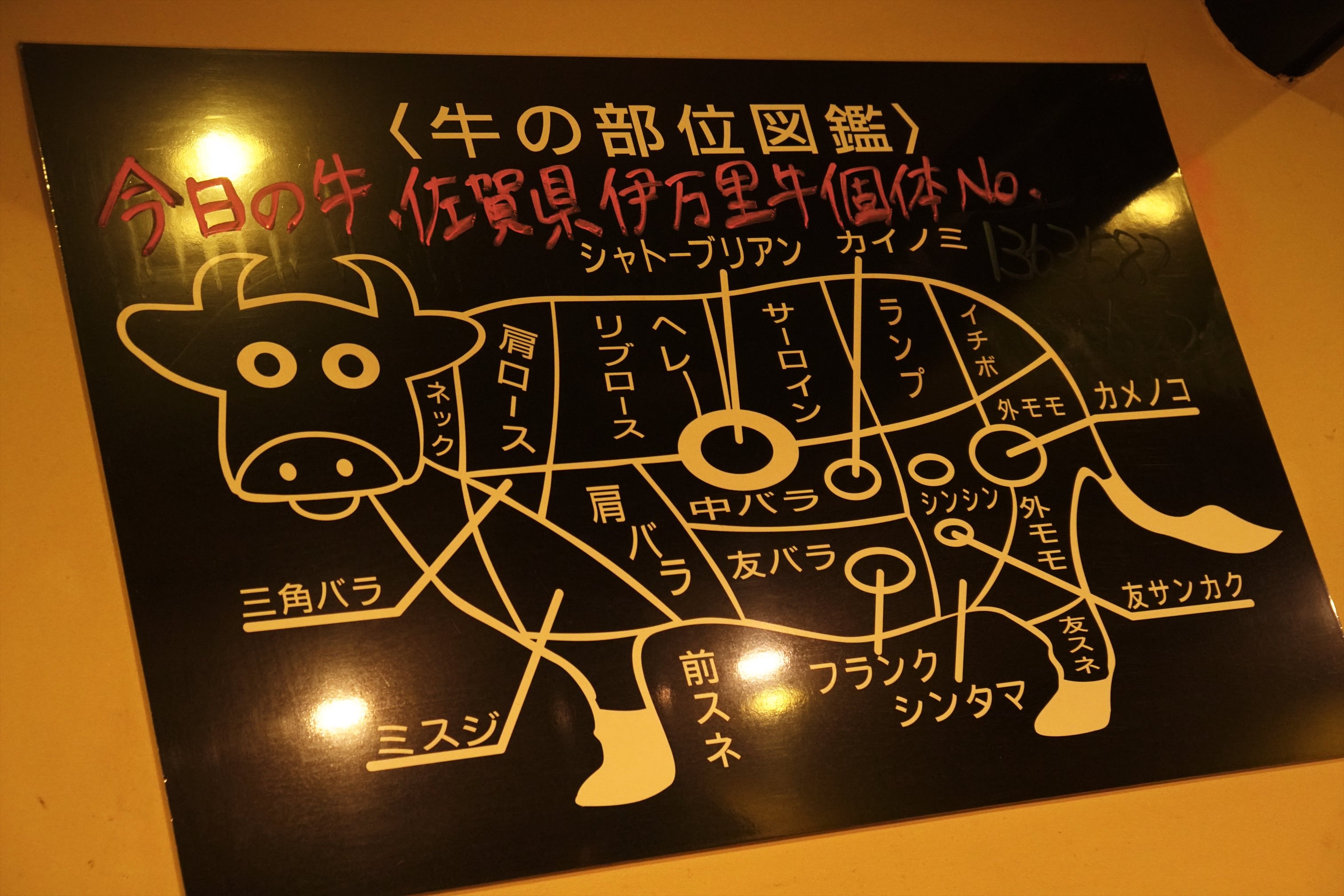 牆壁上也有整頭牛的圖案可以對照菜單參考